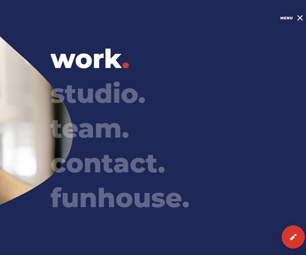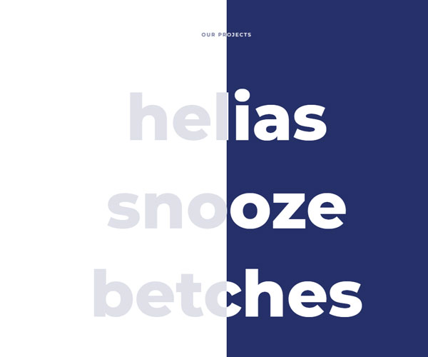 Buzzworthystudio一家數字產業設計公司,網站以藍白角交錯的半屏設計與點擊式的